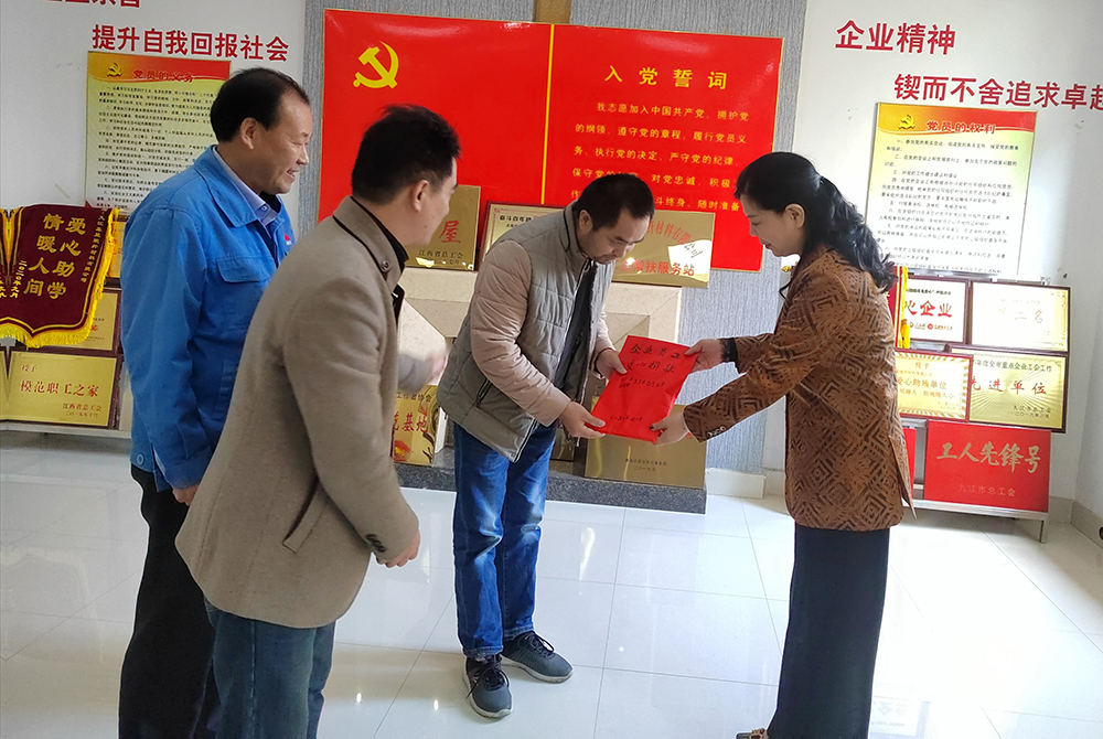 在獲悉這一情況后,集團(tuán)公司工會(huì)主席羅玲,特地委派行政副總孟潔靜、行政部長(zhǎng)鄒海平、副部長(zhǎng)余啟東于10月22日前往醫(yī)院探望病人并詳細(xì)了解其家庭境況。
